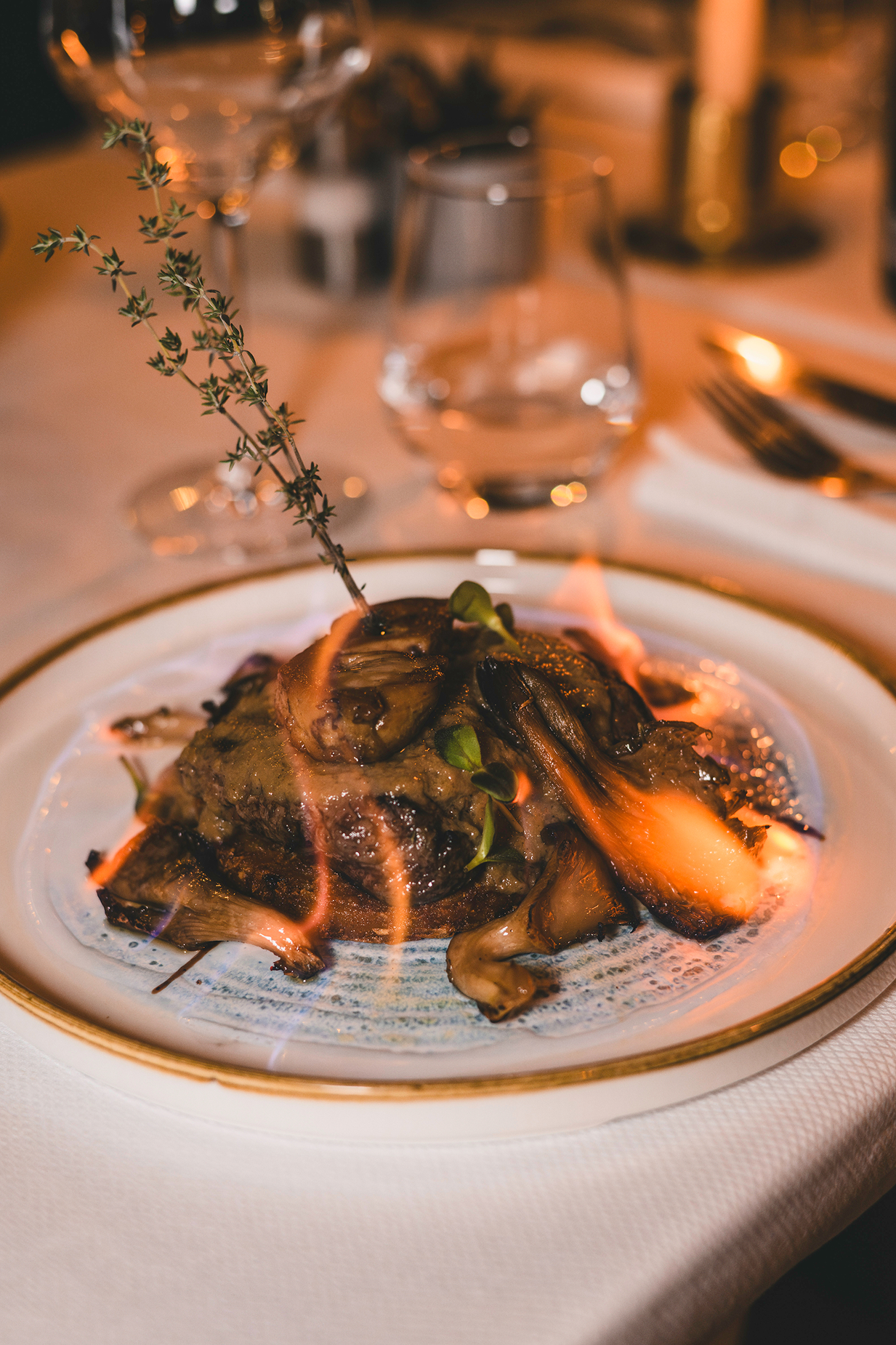 Allergens listBeef fillet Rossini, wild mushroom sauce, flambéed with thym